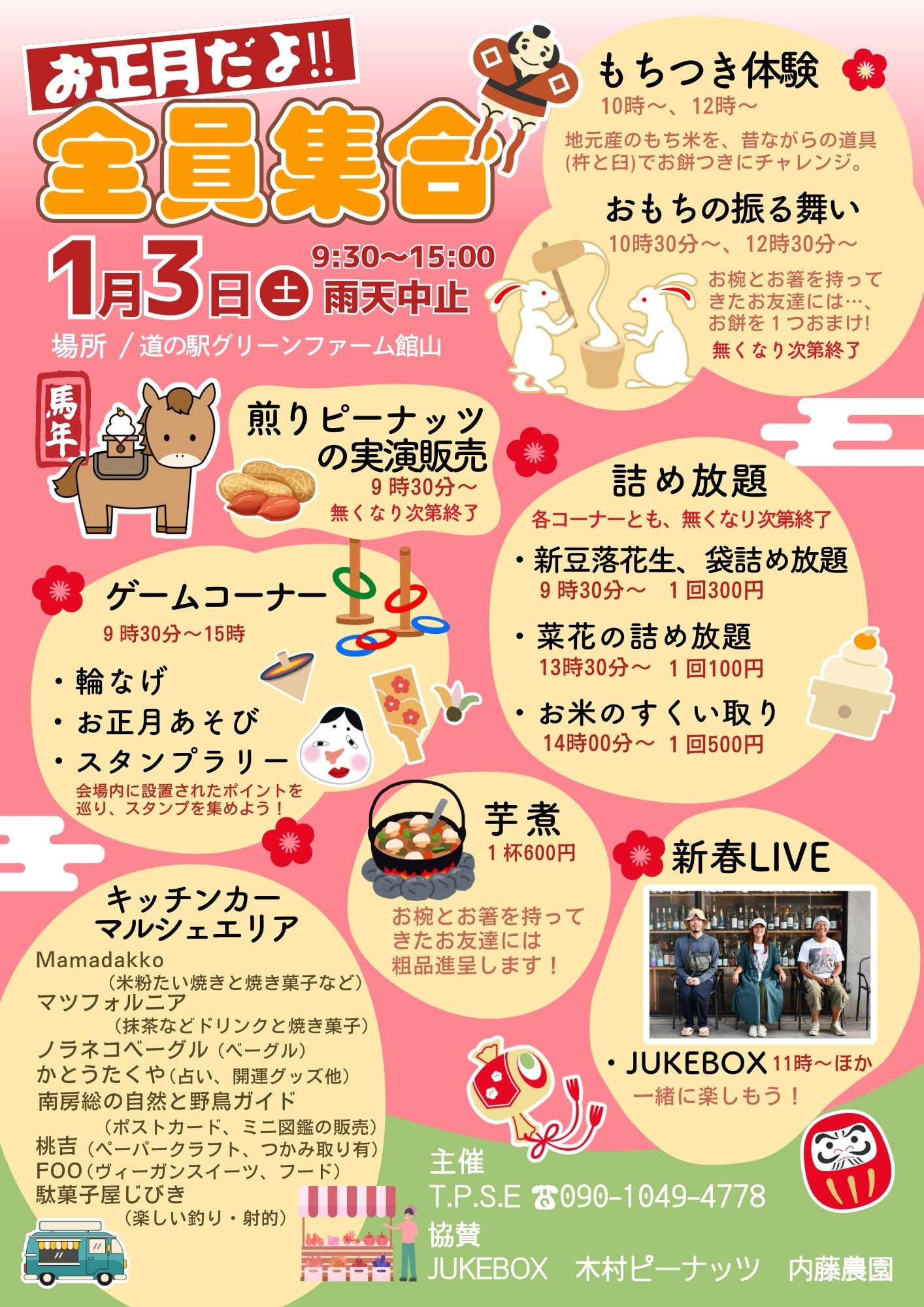 お知らせ 2025/12/21 1月3日は「全員集合!」 餅つきに羽根つき、こま回し…と お正月らしいイベントが開催されます。 つきたてお餅の振る舞いに 自前のお椀とお箸を持参すると、 お餅を1個おまけしてくれるのはうれしい! 古い記事へ 一覧 新しい記事へ